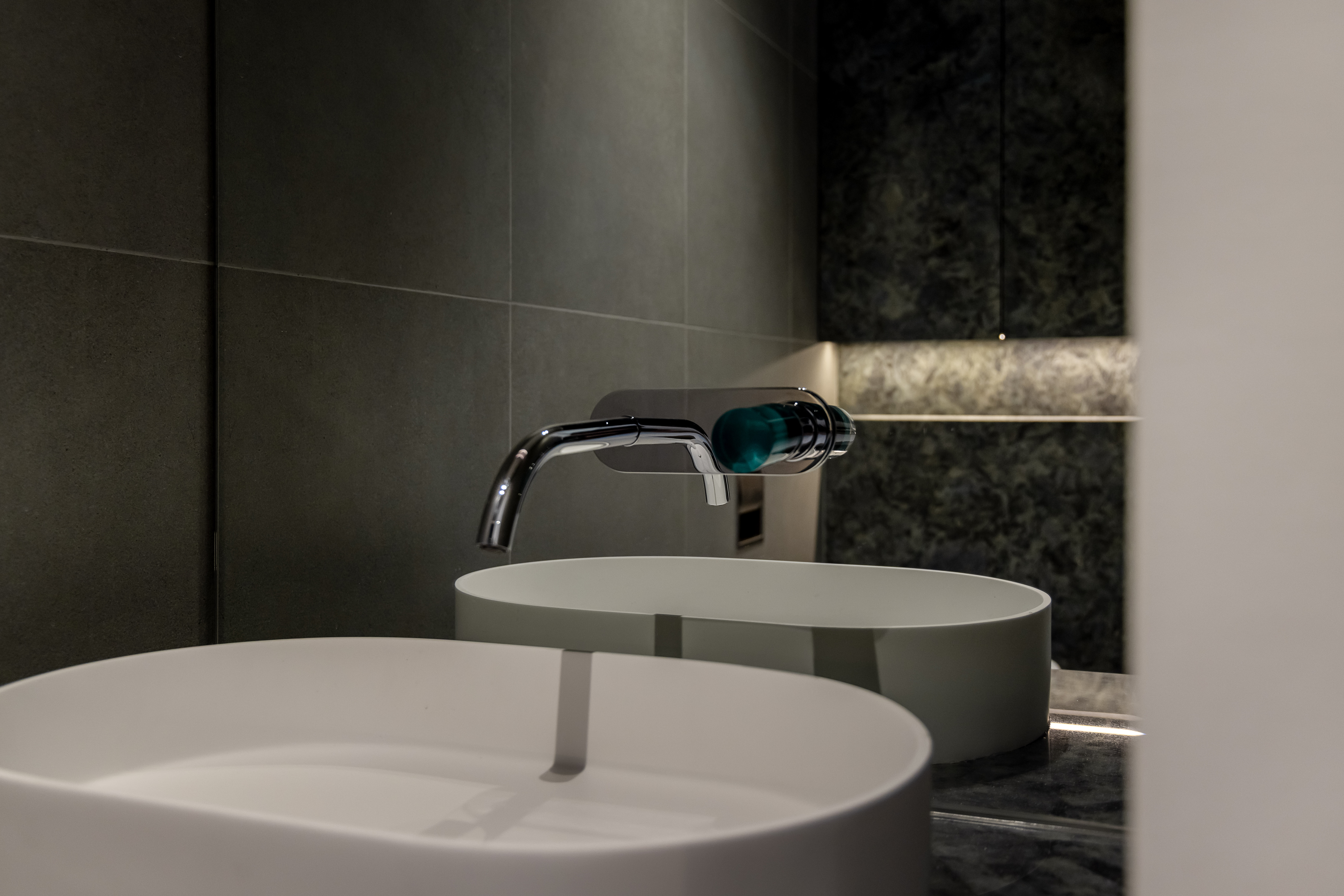 기존 구조는 보통 2가구 혹은 연령대가 높은 세대를 위해 설계되어 주방과 거실이 단절되어 있었고, 3개의 욕실을 갖추고 있었지만 활용도가 아쉬웠습니다. 따라서 각 방과 공용 공간에서 모두 욕실을 편하게 사용할 수 있도록, 하나의 욕실을 둘로 분리하여 4개의 욕실로 재구성해주었습니다.
