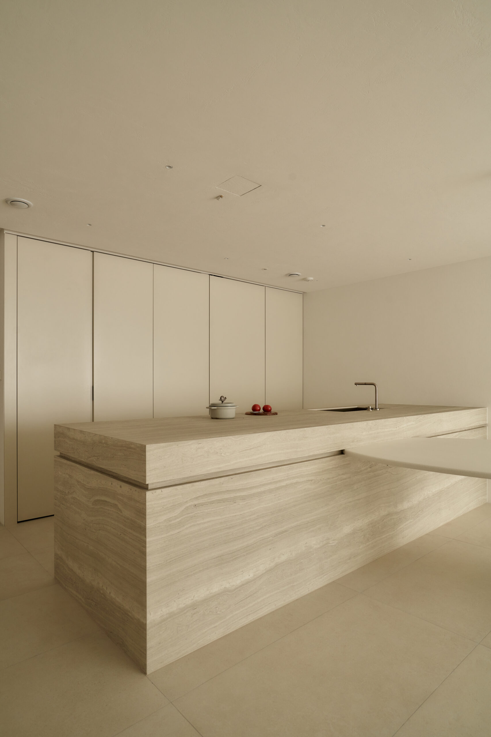 By removing unnecessary elements and focusing on storage and function, the design uses tile flooring for a cool, refined mood and adjustable glass between the bedroom and living area to create flexible spatial use realizing a “maximum within minimum” approach.