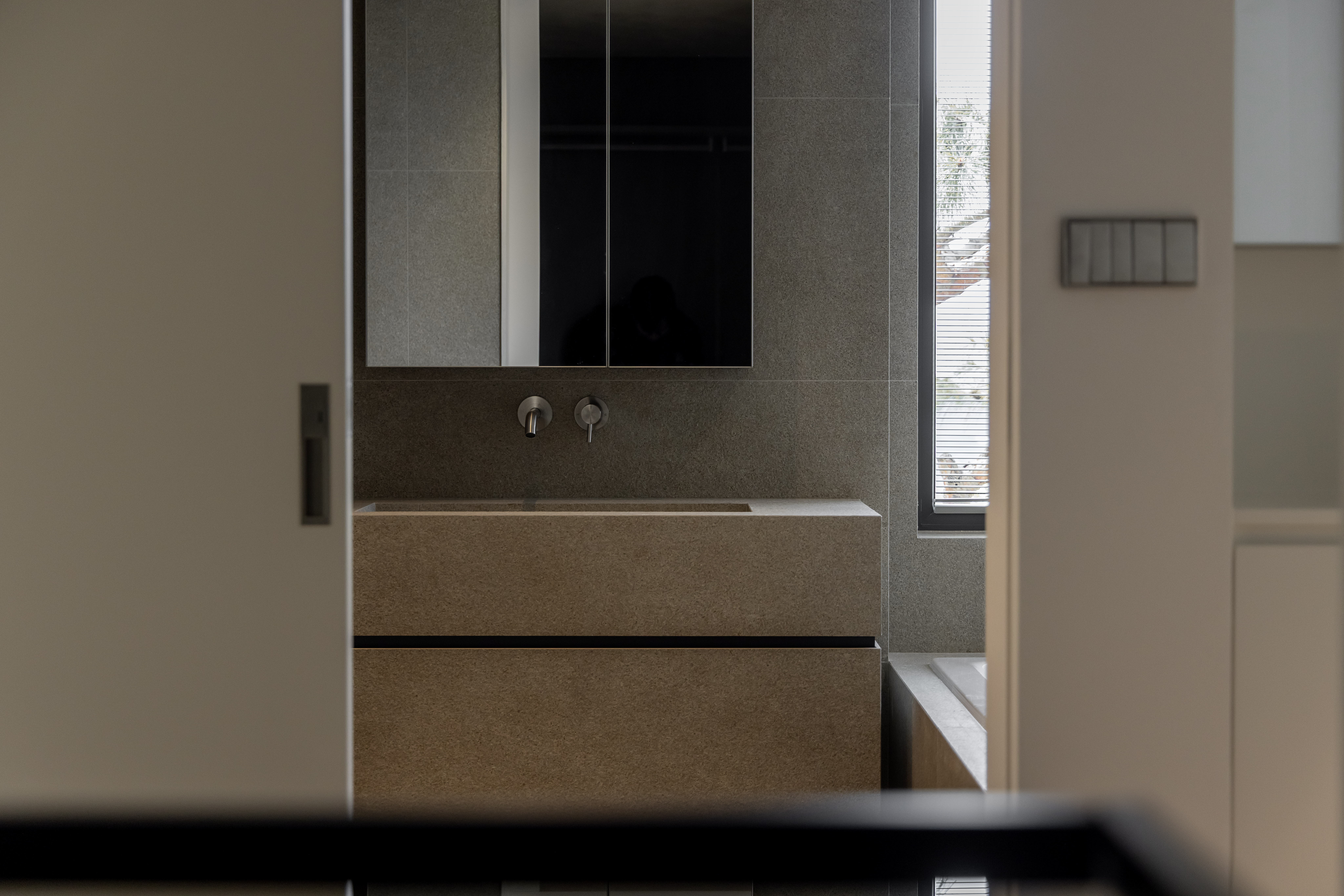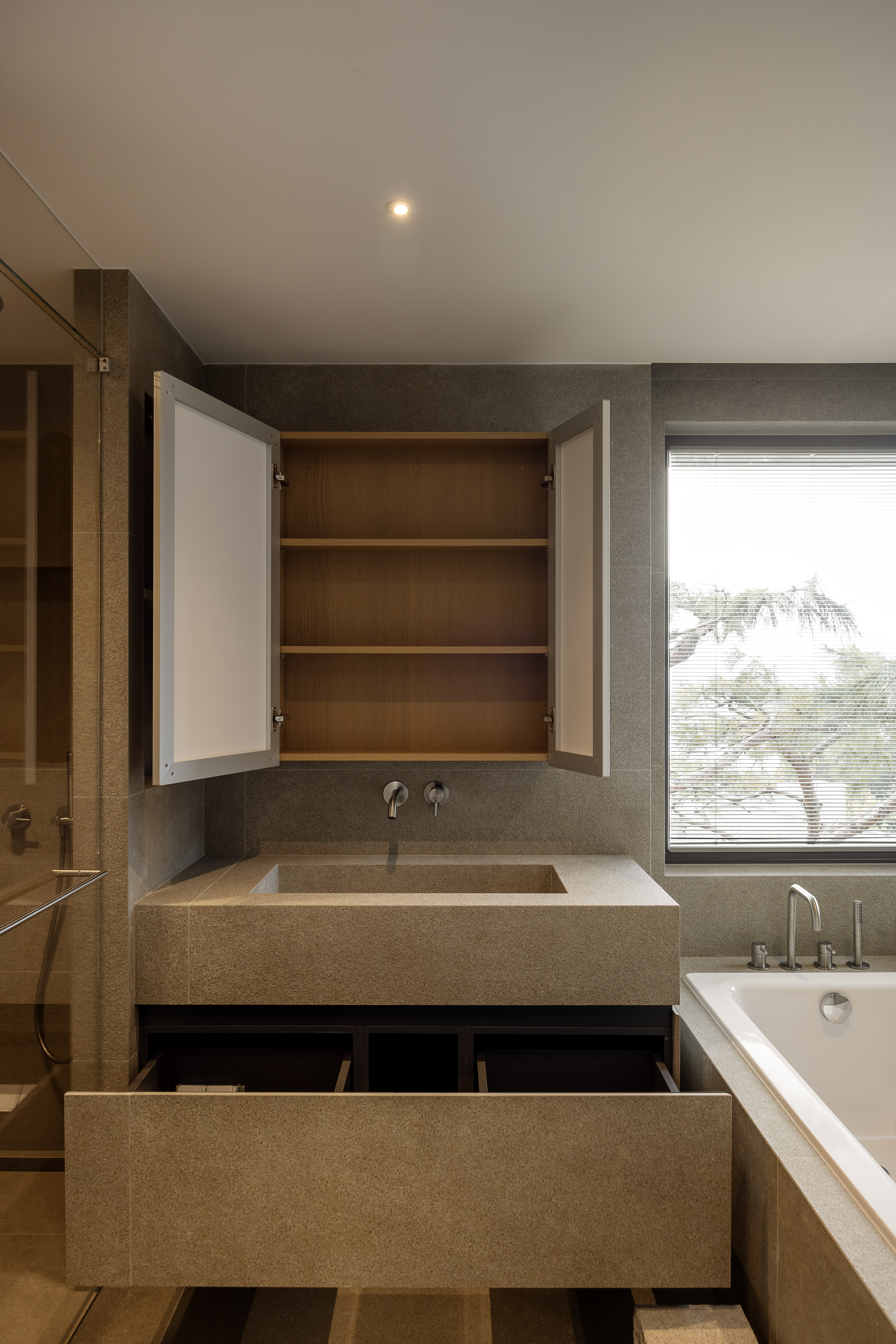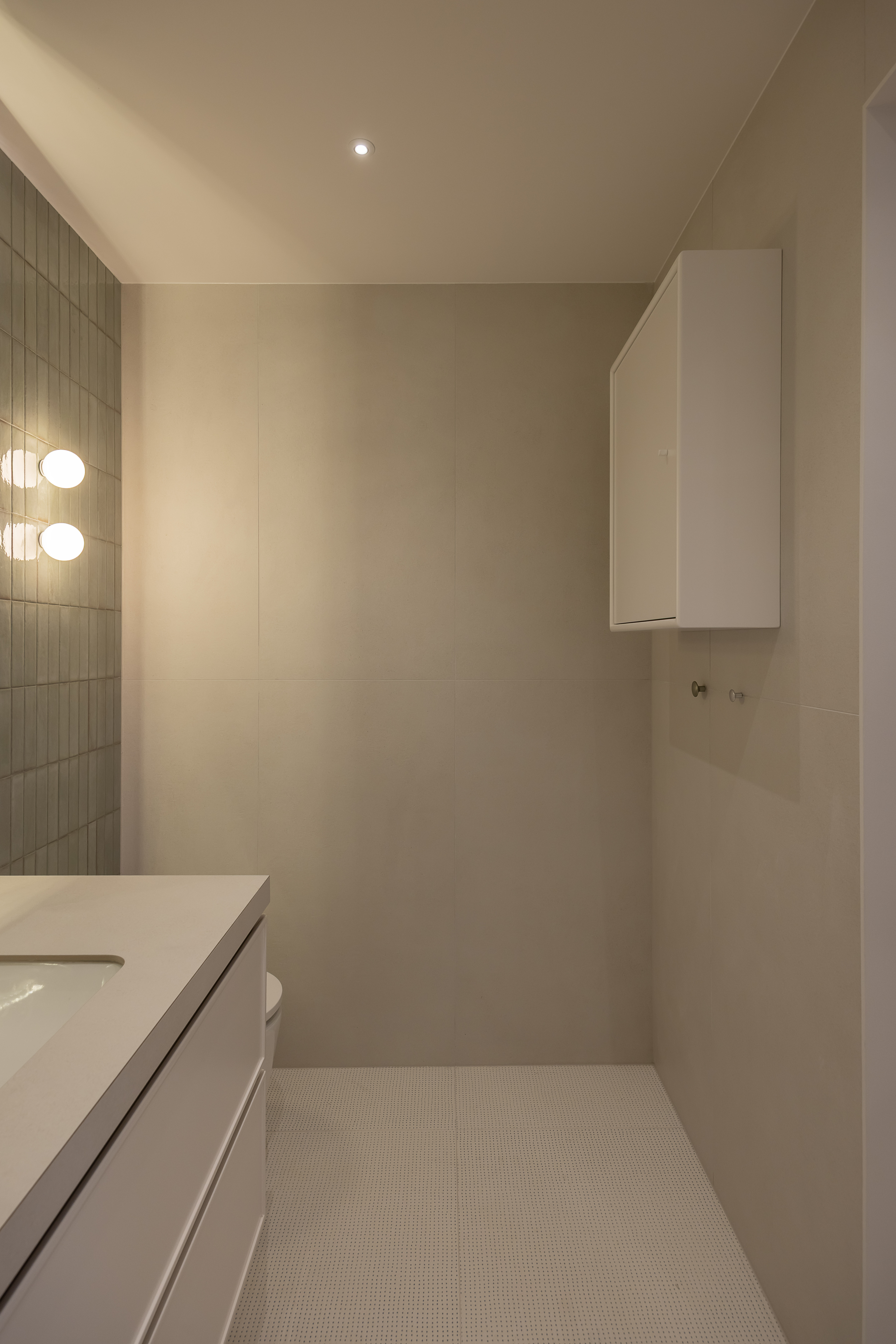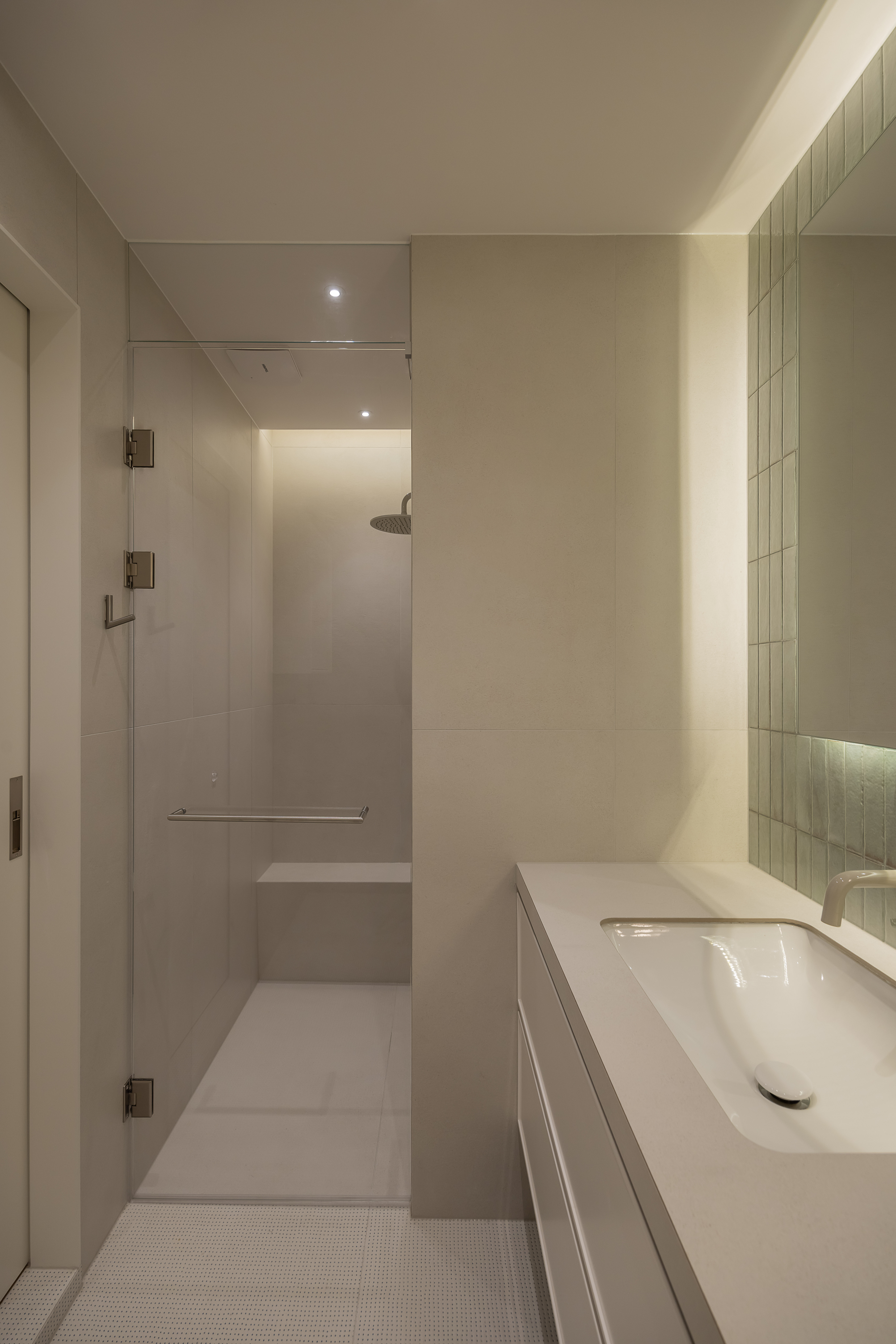 기존 구조는 보통 2가구 혹은 연령대가 높은 세대를 위해 설계되어 주방과 거실이 단절되어 있었고, 3개의 욕실을 갖추고 있었지만 활용도가 아쉬웠습니다. 따라서 각 방과 공용 공간에서 모두 욕실을 편하게 사용할 수 있도록, 하나의 욕실을 둘로 분리하여 4개의 욕실로 재구성해주었습니다.