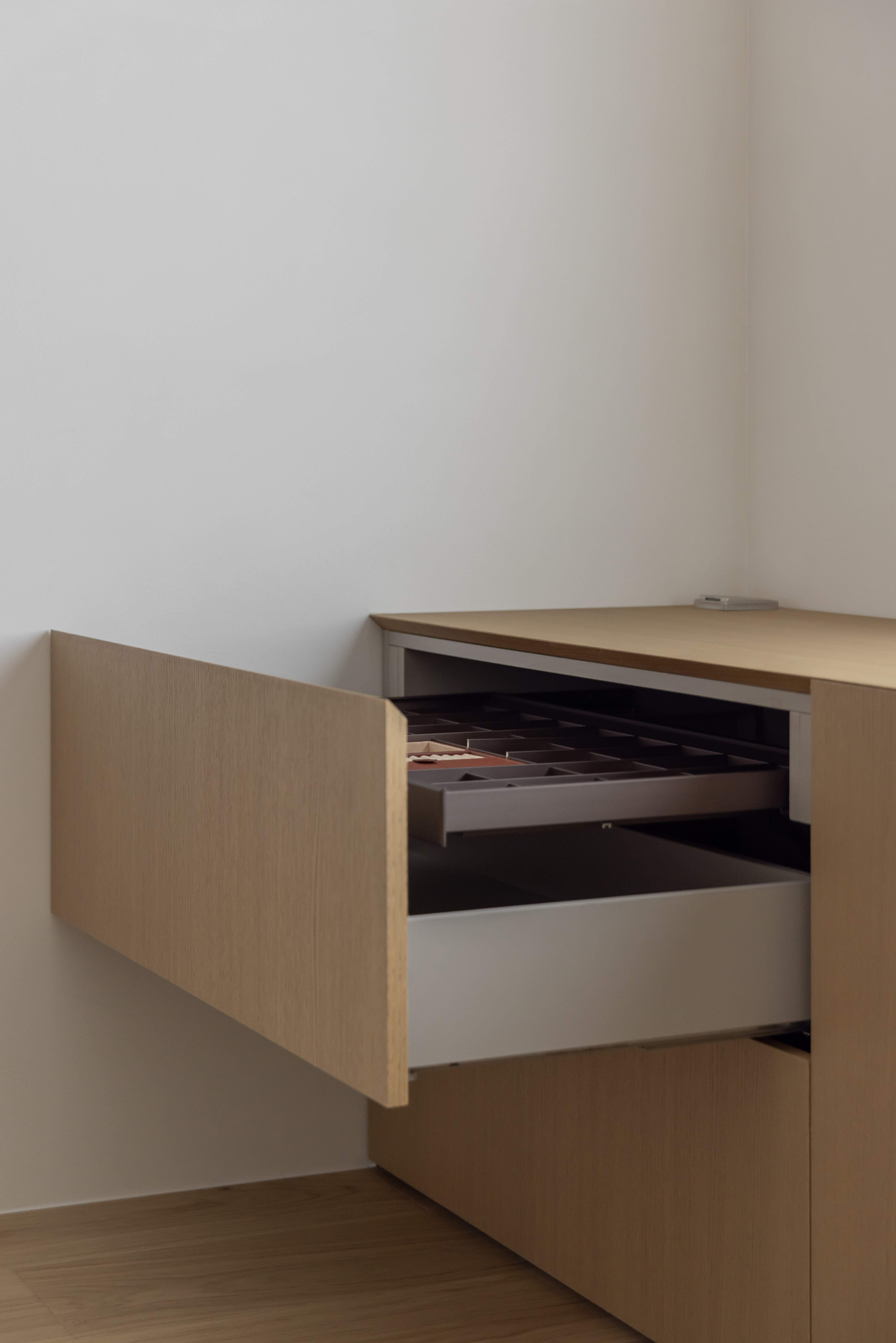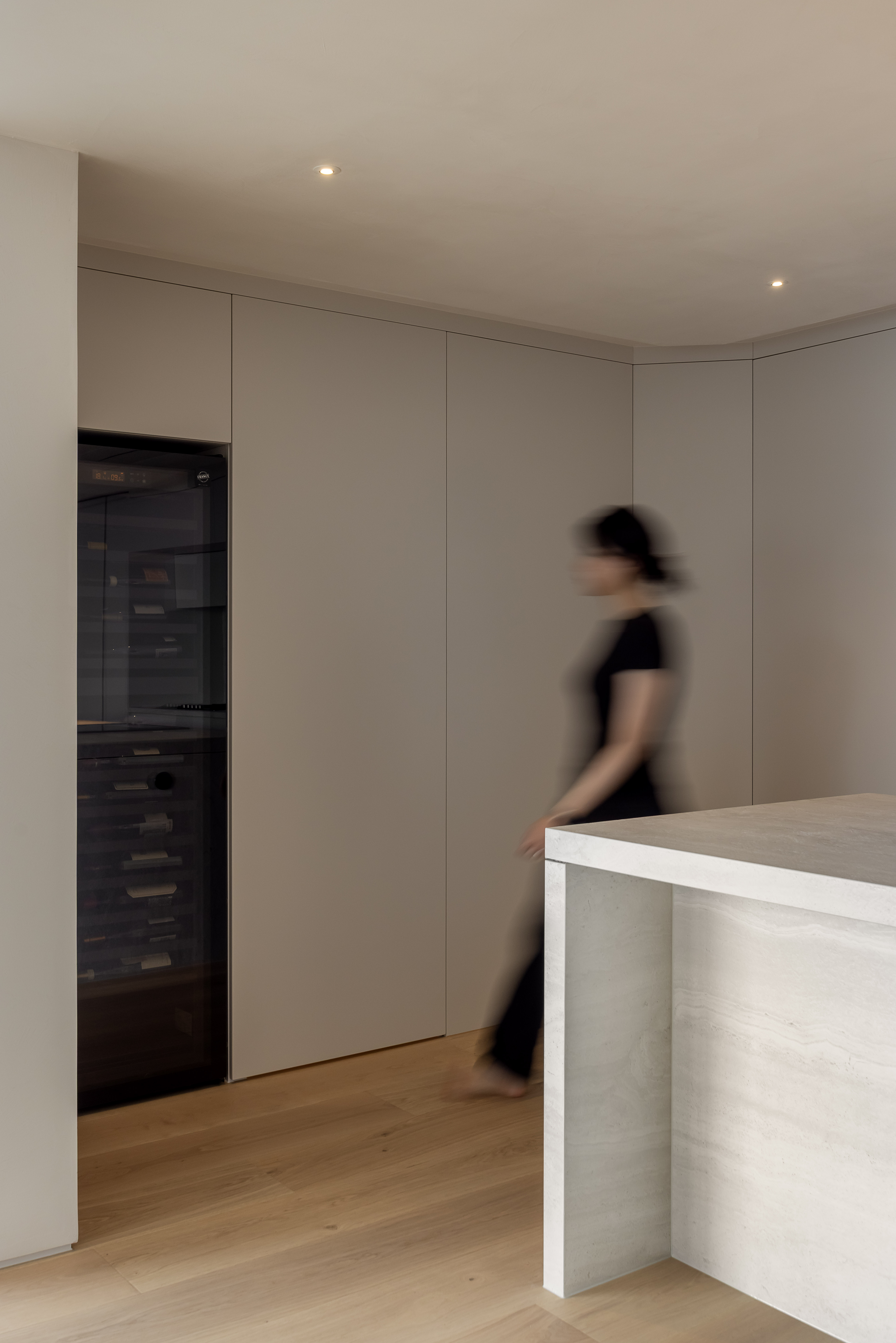 그 외 기능적인 붙박이장이나 주방 캐비닛 많은 기능을 담고 있지만 도어의 비율과 소재를 크림톤으로 단정한 구성을 나타내며, 기존 플라스터 회벽과 은은하게 한 톤으로 어우러지도록 의도했습니다.