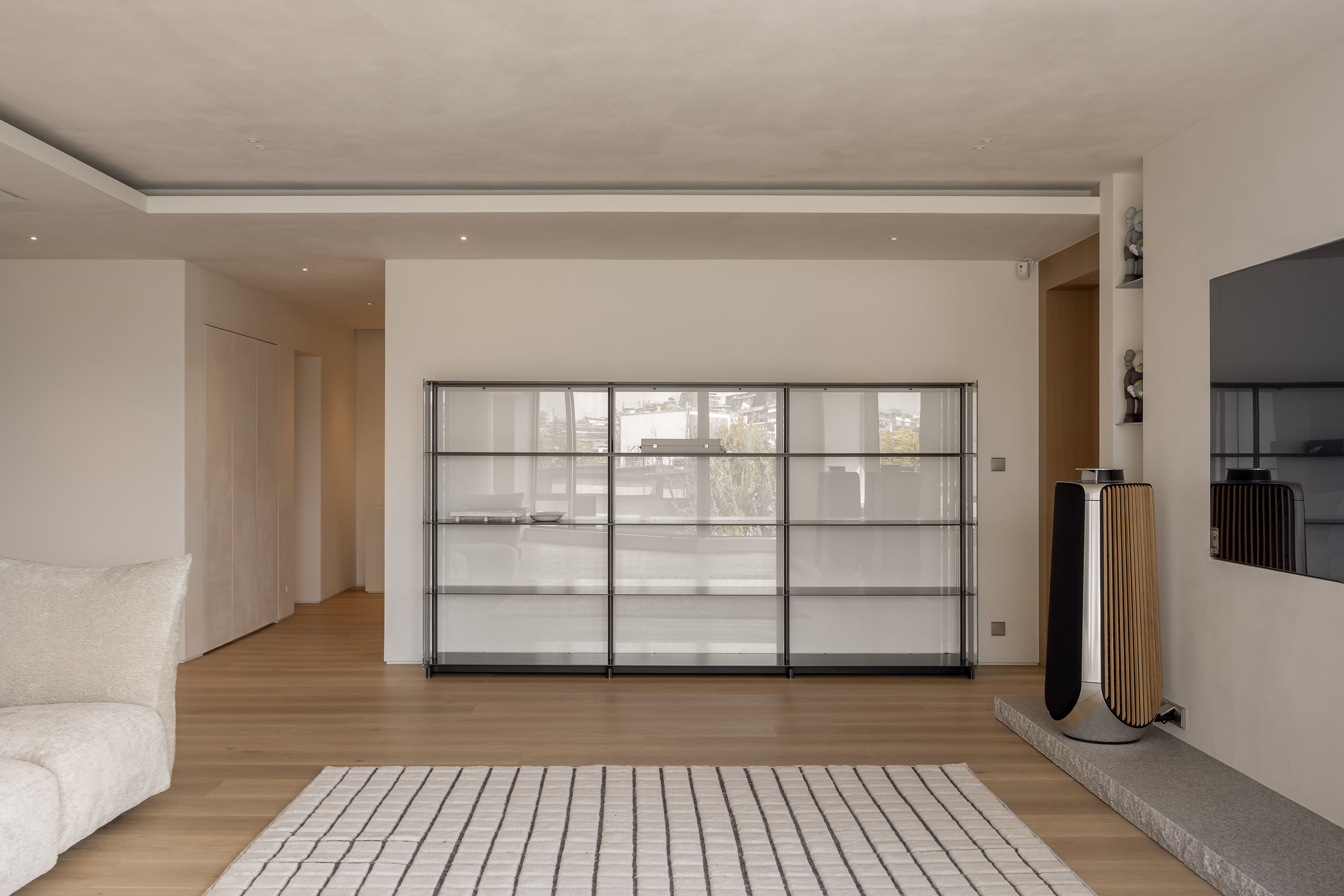 한남동 유엔빌리지 안에 위치한 이 프로젝트는 오래된 주택이었으나 넓은 거실 면적과 한강이 내려다보이는 장점을 가진 공간이었습니다. 이에 프레임이 얇은 시스템 창호를 시공하여, 내부에서 바라보는 한강 뷰를 극대화시켜주었습니다.