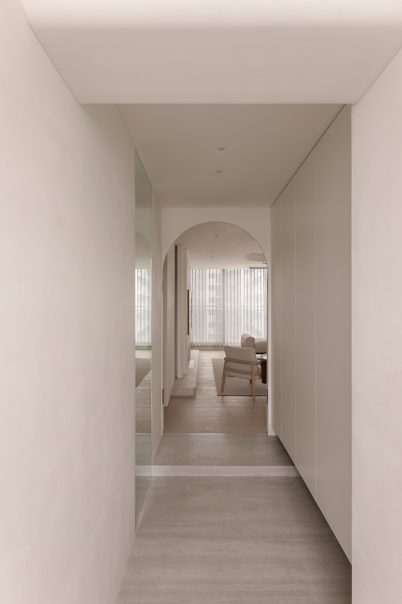 This project blends work and rest by reflecting the client’s lifestyle, opening key spaces to maximize the Han River view and create fluid transitions. Sculptural lime plaster surfaces, system windows, and carefully scaled curves shape a cohesive, light-responsive interior, while the living room’s recessed TV and fireplace form a calm, welcoming retreat.
